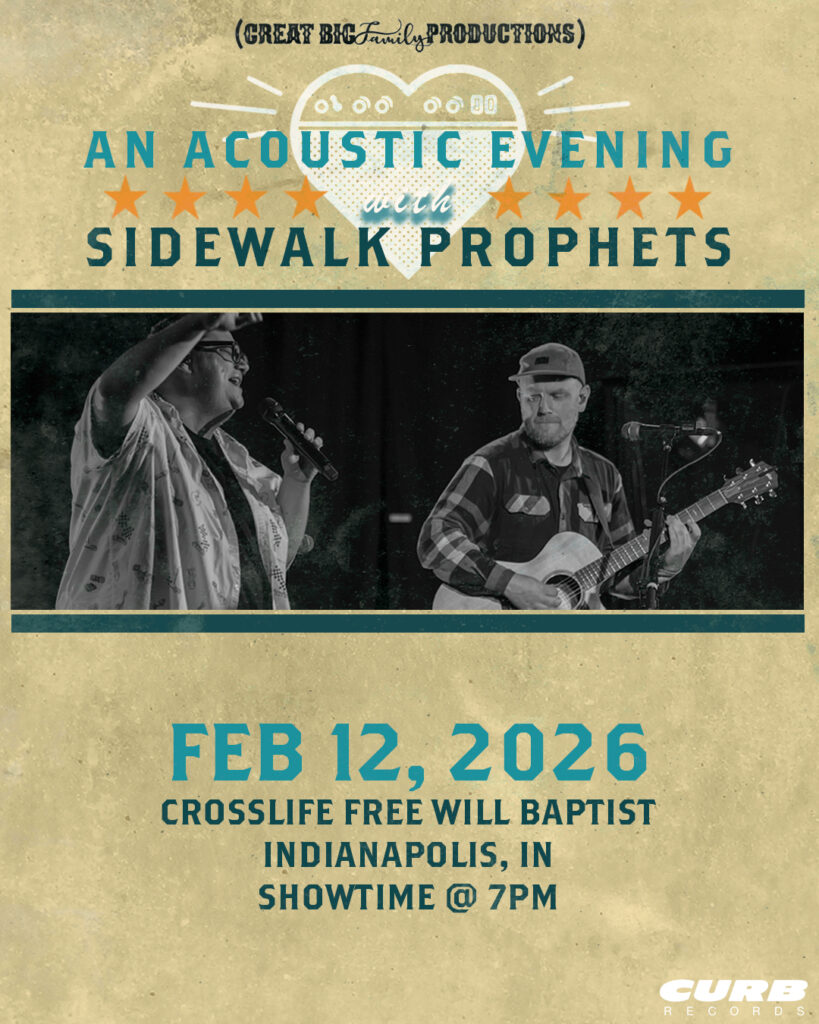 We are so excited to have Sidewalk Prophets coming to CrossLife Free Will Baptist Church on Thursday, February 12th, 2026 at 7pm. It is going to be a great evening. There are only 300 tickets and it should be a great acoustic night.